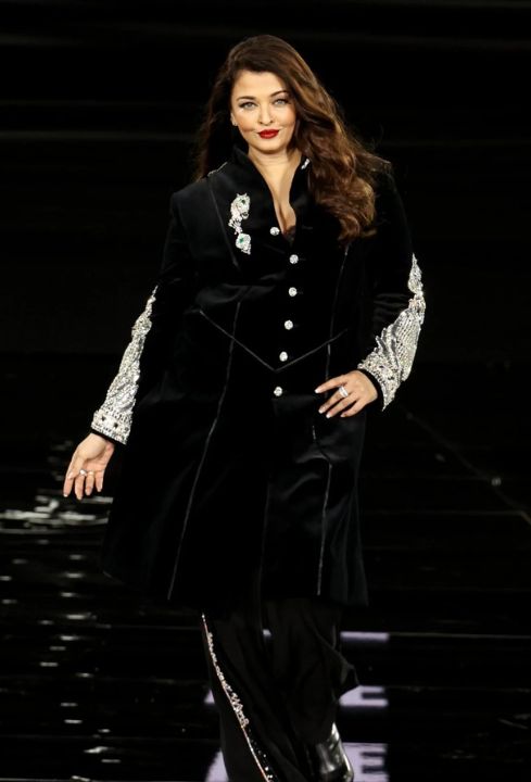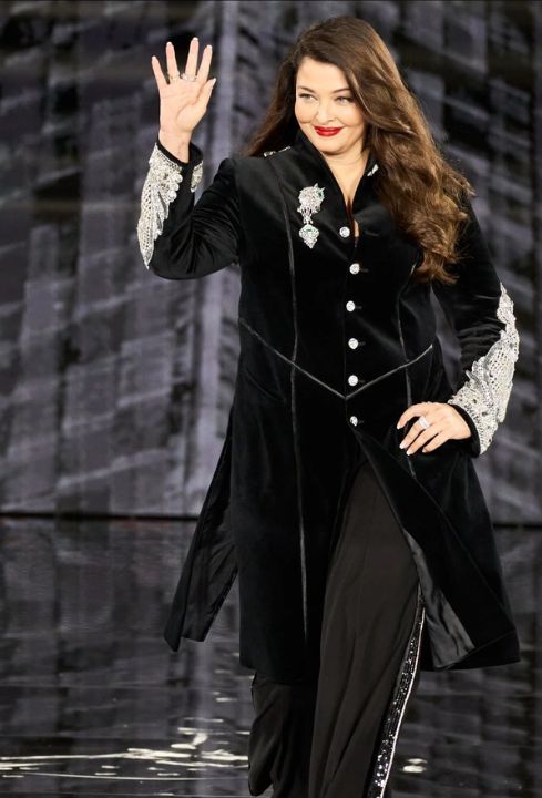 पेरिस फैशन वीक में ऐश्वर्या राय भारत के फेमस फैशन डिजाइनर मनीष मल्होत्रा की ड्रेस को पहना है। जो एक ब्लैक कलर की शेरवानी है, जिसमें बेशकीमती हीरों की डिजाइनिंग की गई है।