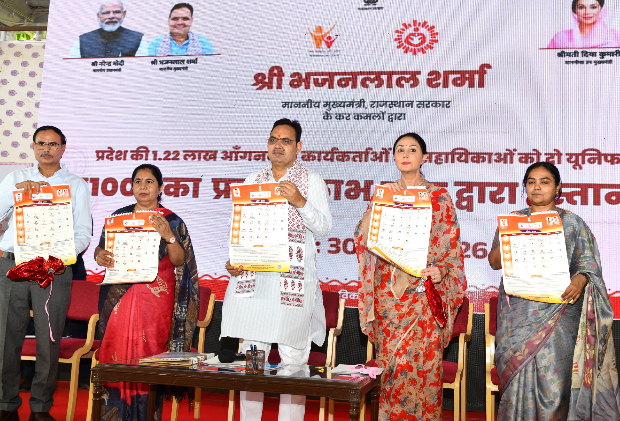 जयपुर। मुख्यमंत्री भजनलाल शर्मा ने सोमवार को मुख्यमंत्री निवास पर आयोजित कार्यक्रम में 1 लाख 22 हजार आंगनबाड़ी कार्यकर्ताओं एवं सहायिकाओं को दो यूनिफार्म के लिए 1-1 हजार रूपये डीबीटी के माध्यम से सीधे उनके बैंक खातों में हस्तांतरित की। इस दौरान शर्मा ने प्रधानमंत्री मातृ वंदना योजना, लाडो प्रोत्साहन योजना, कालीबाई भील योजना के लाभार्थियों को भी चैक सौंपे।