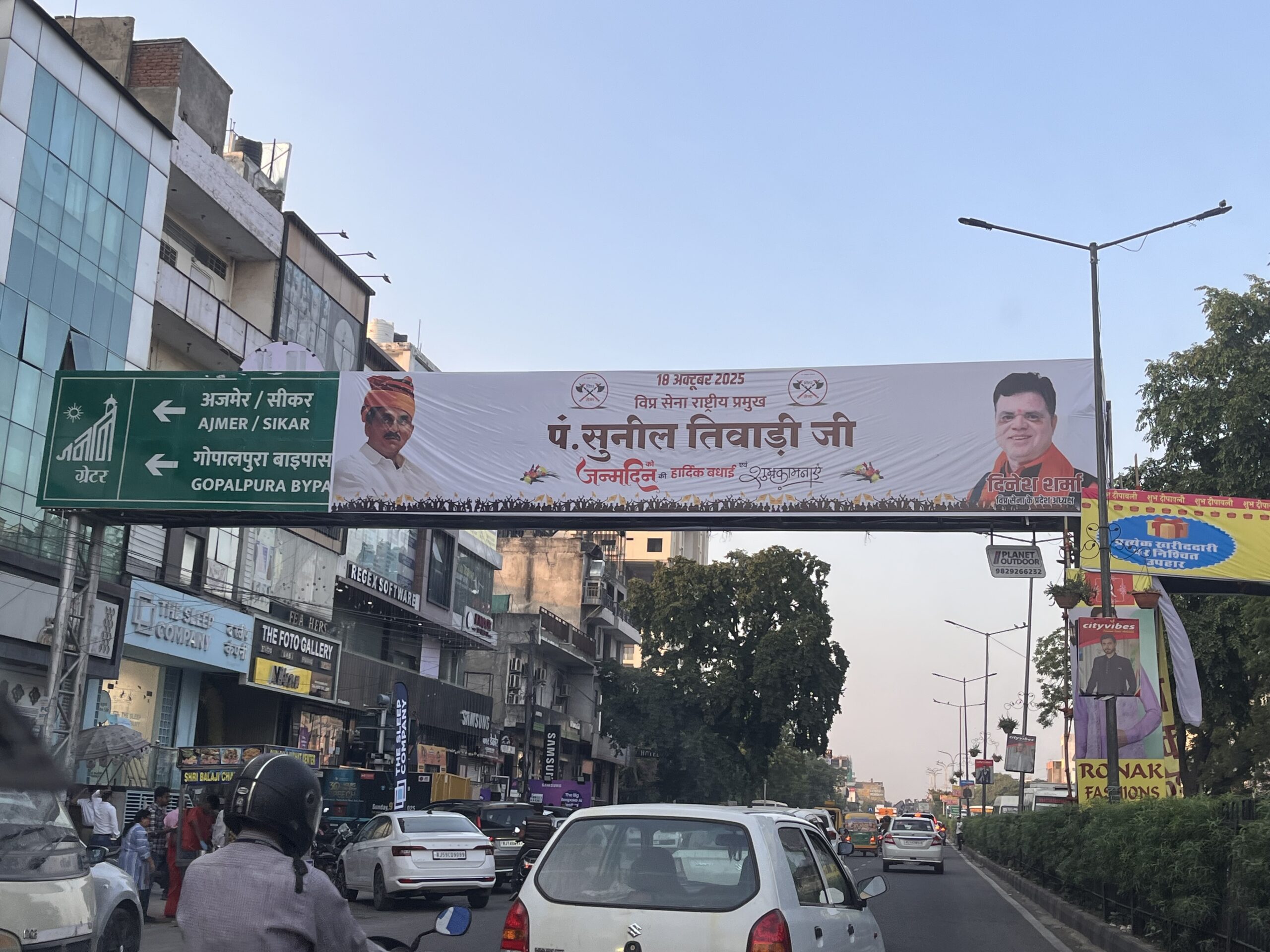जयपुर, 18 अक्टूबर 2025: राजधानी जयपुर की सड़कों पर लगे साइनबोर्ड, जो राहगीरों को रास्ता दिखाने के लिए लगाए गए हैं, अब नेताओं के जन्मदिन की बधाई देने वाले पोस्टर-बैनरों से अटे पड़े हैं। शहर के विभिन्न हिस्सों में सार्वजनिक साइनबोर्डों पर नेताओं और उनके समर्थकों द्वारा चिपकाए गए ये पोस्टर न केवल शहर की सुंदरता को खराब कर रहे हैं, बल्कि राहगीरों को रास्ता खोजने में भी परेशानी पैदा कर रहे हैं।