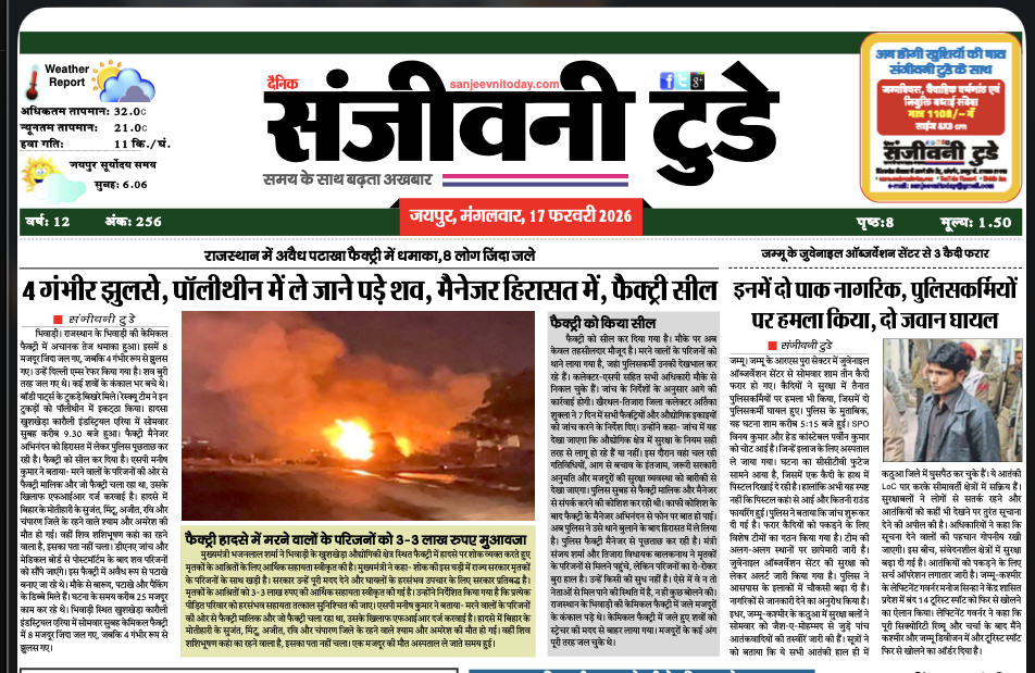 अलवर भिवाड़ी की टपूकड़ा फैक्ट्री में आग, 7 मजदूरों के शव मिले, मौत का आंकड़ा बढ़ने की आशंका Read More » February 17, 2026 No Comments