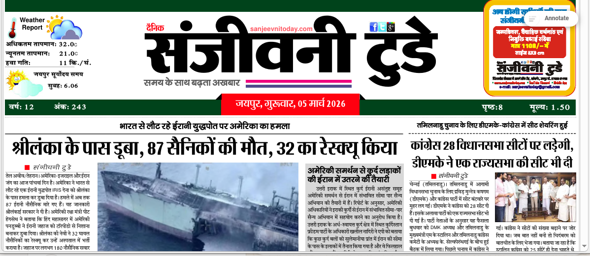 आज फोकस में जंग समंदर तक पहुंची! ईरानी जहाज पर भयानक पनडुब्बी अटैक, दर्जनों मौतें, 100 से ज्यादा लापता Read More » March 5, 2026 No Comments