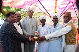 जयपुर, दामोदर लाल बौद्ध वरिष्ठ अध्यापक निवासी चकचैनपुरा ने अपने सुपुत्र सोनू की शादी भेरूपुरा निवासी सुरेश कुमार बैरवा की सुपुत्री पुजा के साथ बड़ी सादगी के साथ और बिना दहेज के शादी की गई बतौर पंचों के सामने सगुन के रूप में एक रूपया और नारियल अपने समधी ओर परिवार के साथ बड़े ही उल्लास और उमंग के साथ स्वीकार किया इस शादी की चर्चा आस पास गांवों मैं हो रही है दामोदर बौद्ध पाचोलास में वरिष्ठ अध्यापक के पद पर कार्यरत हैं और समधी सुरेश चन्द जी साधारण किसान है विवाह समारोह में आए हुए मेहमानों को बिना दहेज शादी की सभी लोगो ने दामोदर बौद्ध की प्रशंसा की गई दुल्हा सोनु कुमार शुभ लक्ष्मी सामाजिक सेवा संस्थान भी संचालित करते हैं शादी में दोनो तरफ के गणमान्य व्यक्तियों ने समाज में इस तरह पहल शुरू करने का समय आ गया है हम सबको दानव जैसी क्रुर परम्पराओं को खत्म करने का दिलों दिमाग से प्रण लेना होगा हम हमारे परिवार में बहू के रूप में बेटी को लाते हैं और घर में बेटी के समान ही व्यवहार करना चाहिए शादी समारोह में दयाराम धनपाल सीताराम रामकिशन भैरूपुरा महेन्द्र बैरवा प्रिंसिपल विनैद कुमार सीताराम कैप्टन रामकिशन प्रेमराज बबलू ओमप्रकाश राधारमण जोनवाल कैलाश सिसोदिया इन्द्र लाल उपस्थित रहे|